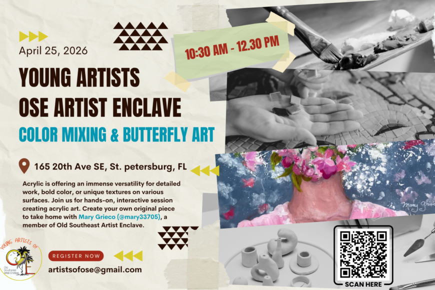 The OSE Artist Enclave designation was granted by the City of St. Petersburg in 2014. This special status allows Old Southeast artists to enrich the neighborhood by using their homes as working studios, artist lofts, galleries, and instructional spaces.