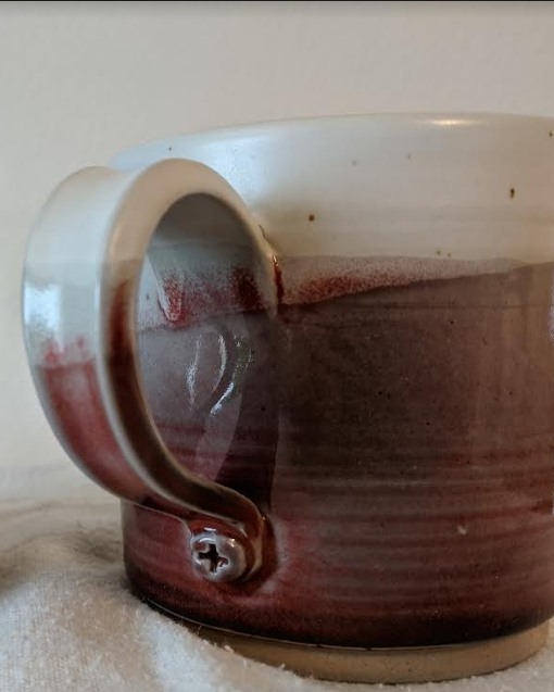 Returning to pottery in his home studio was a heartfelt journey—glazing and firing his pieces at the Morean Center for Clay and showcasing his creations at local art markets. Tom’s ceramic coffee mugs even found a place at the Old South East Market for several years! More recently, he has been exploring sculptures inspired by nature and repurposed materials found during morning bike rides with his dog Jake.